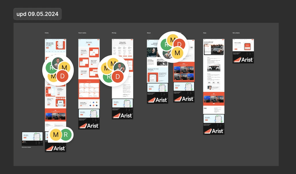 Responsiveness was a critical focus. With feedback from Arist’s team, we fixed quirks across devices: nav styling, mobile hero spacing, icon alignment, and more. To avoid style clashes when moving the new pages into their existing Framer workspace, we rewrote components to match Arist’s global styles — a fiddly job that made the final handoff seamless.