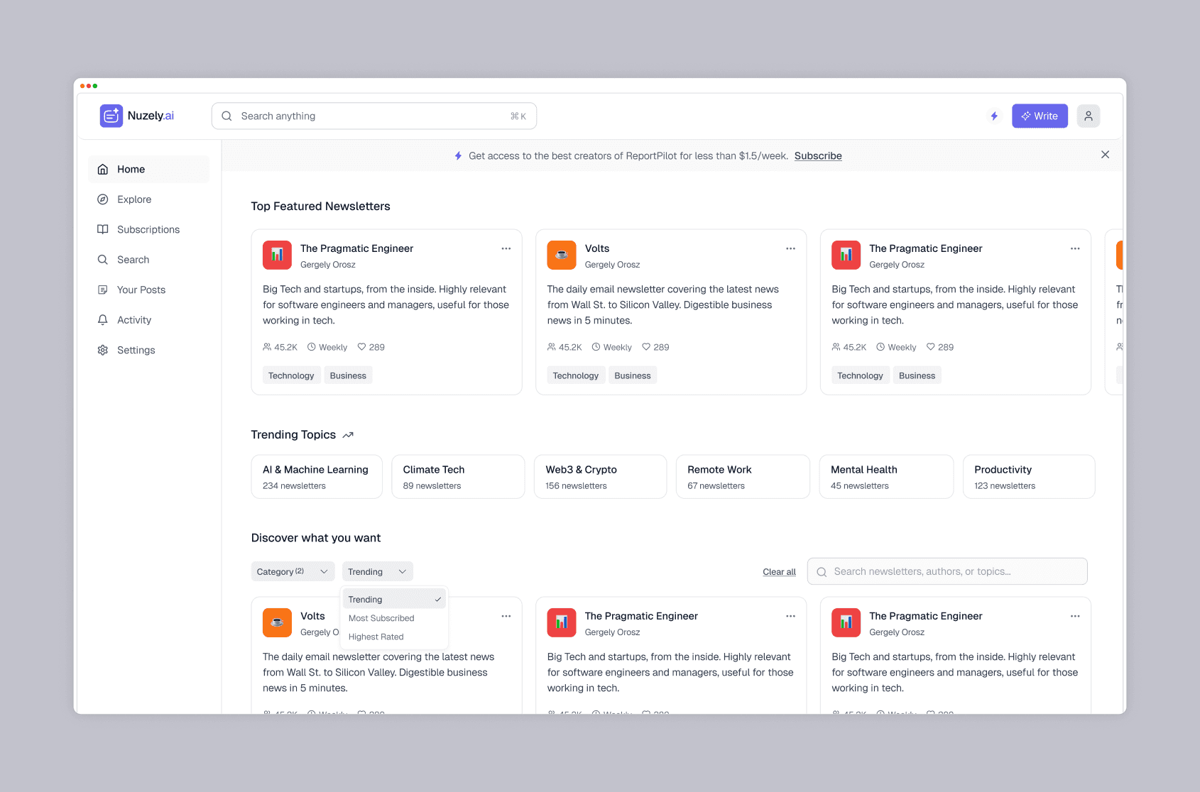 We mapped both sides of the platform from the ground up: subscribers who wanted tailored, AI-generated newsletters delivered on their schedule, and creators who could publish publicly, grow an audience, and earn through subscriptions.