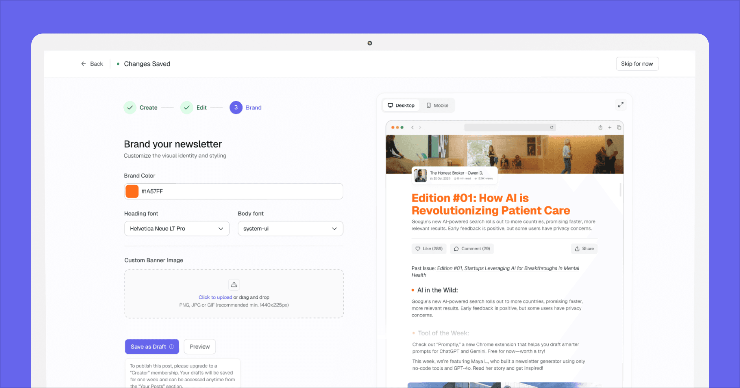 What began as an ambitious idea is now a functioning SaaS platform. Users can sign up, generate newsletters, publish them, subscribe to others, and manage payments in one place. The core experience works and the foundations are solid.