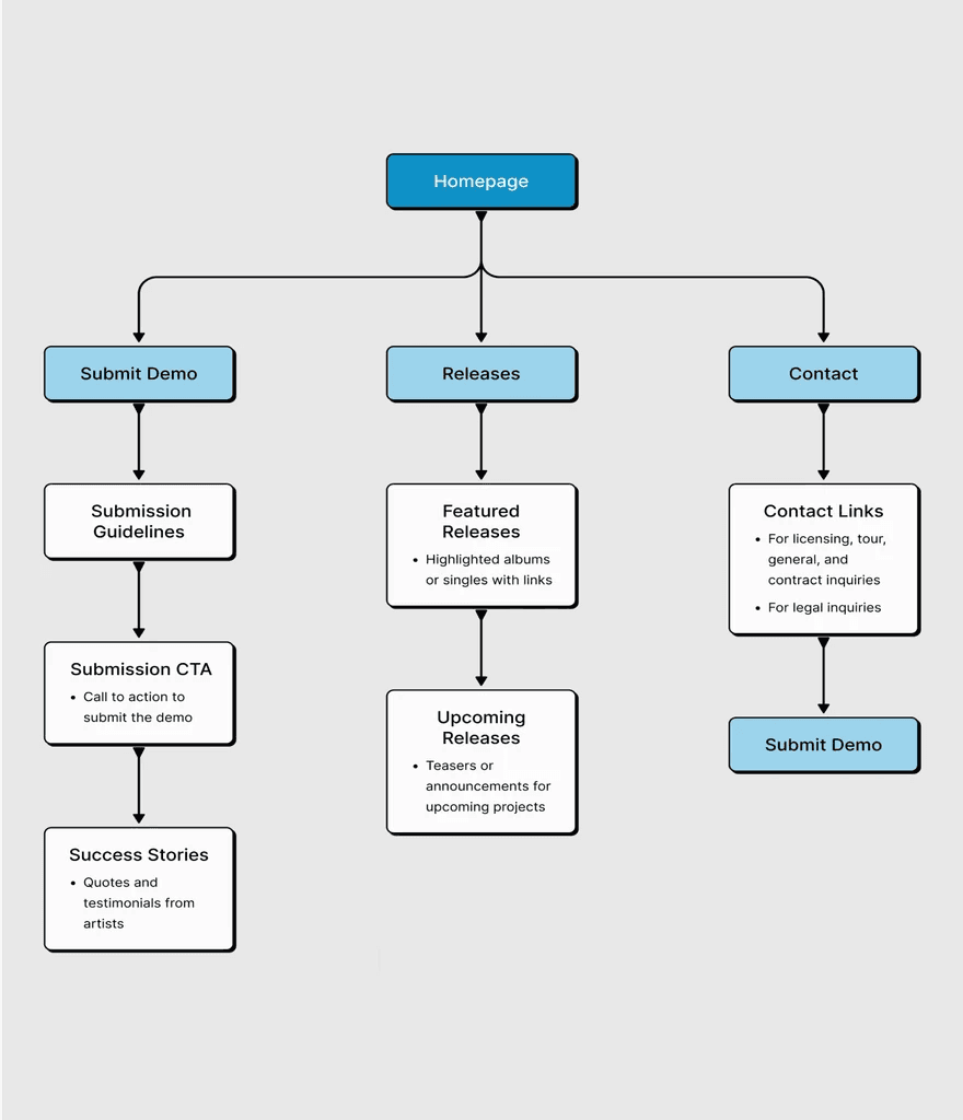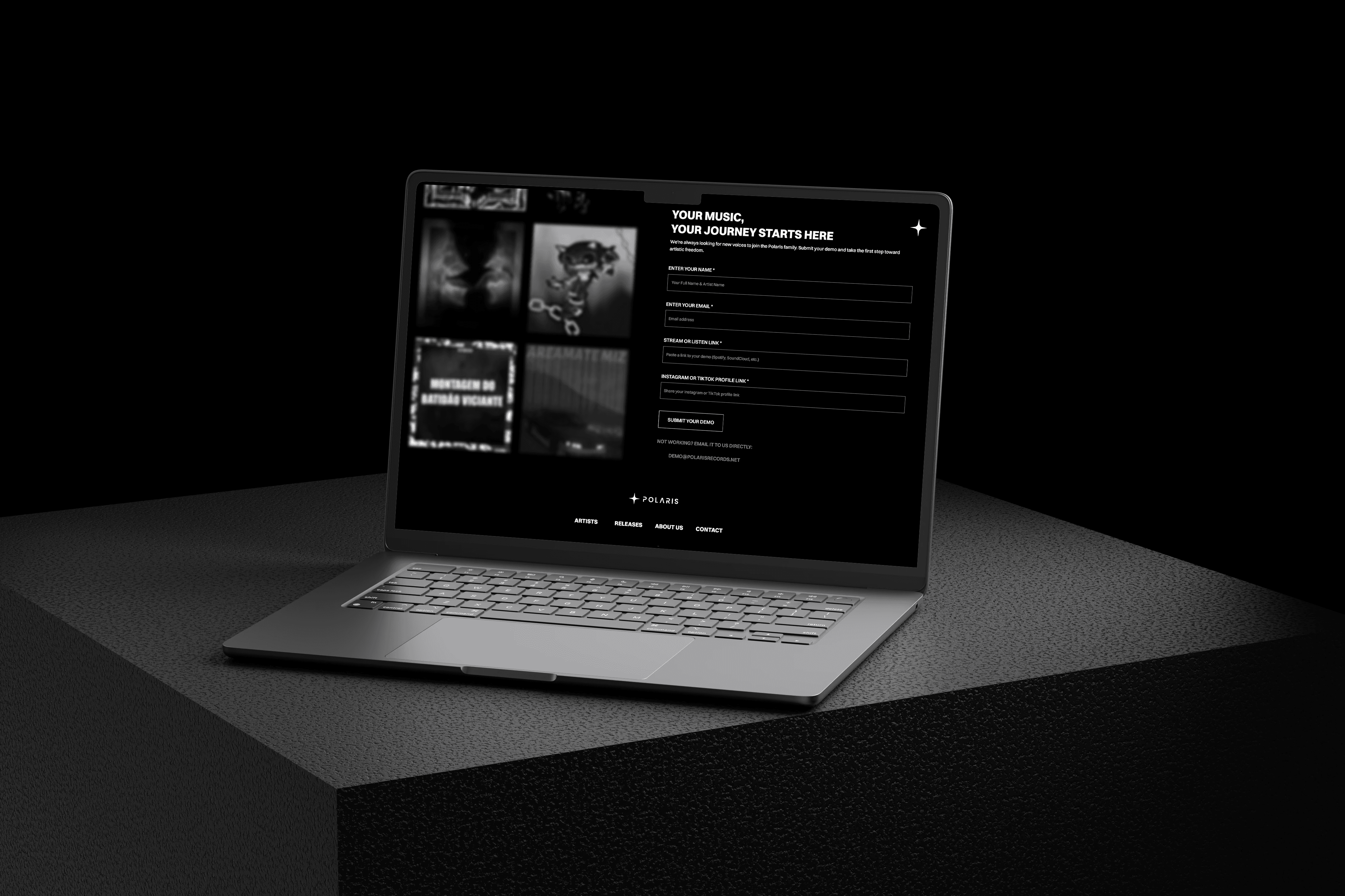 A clean submission portal for demos, built to make artist recruitment easier and more organized