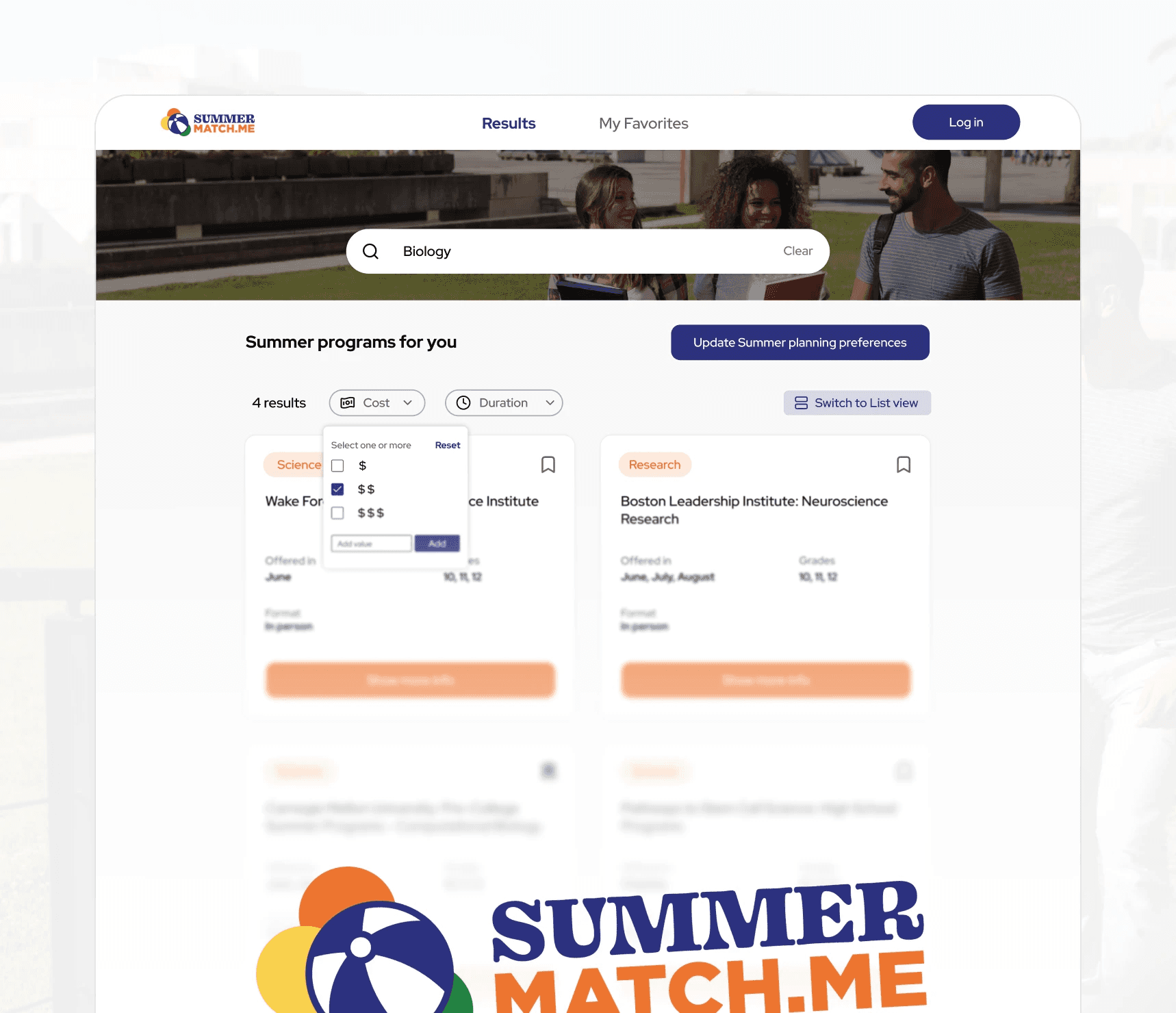 Built for students aged 14–18, the app helps users articulate their values, passions, and goals through guided prompts. From there, our AI matching engine recommends summer experiences aligned to those inputs - covering: