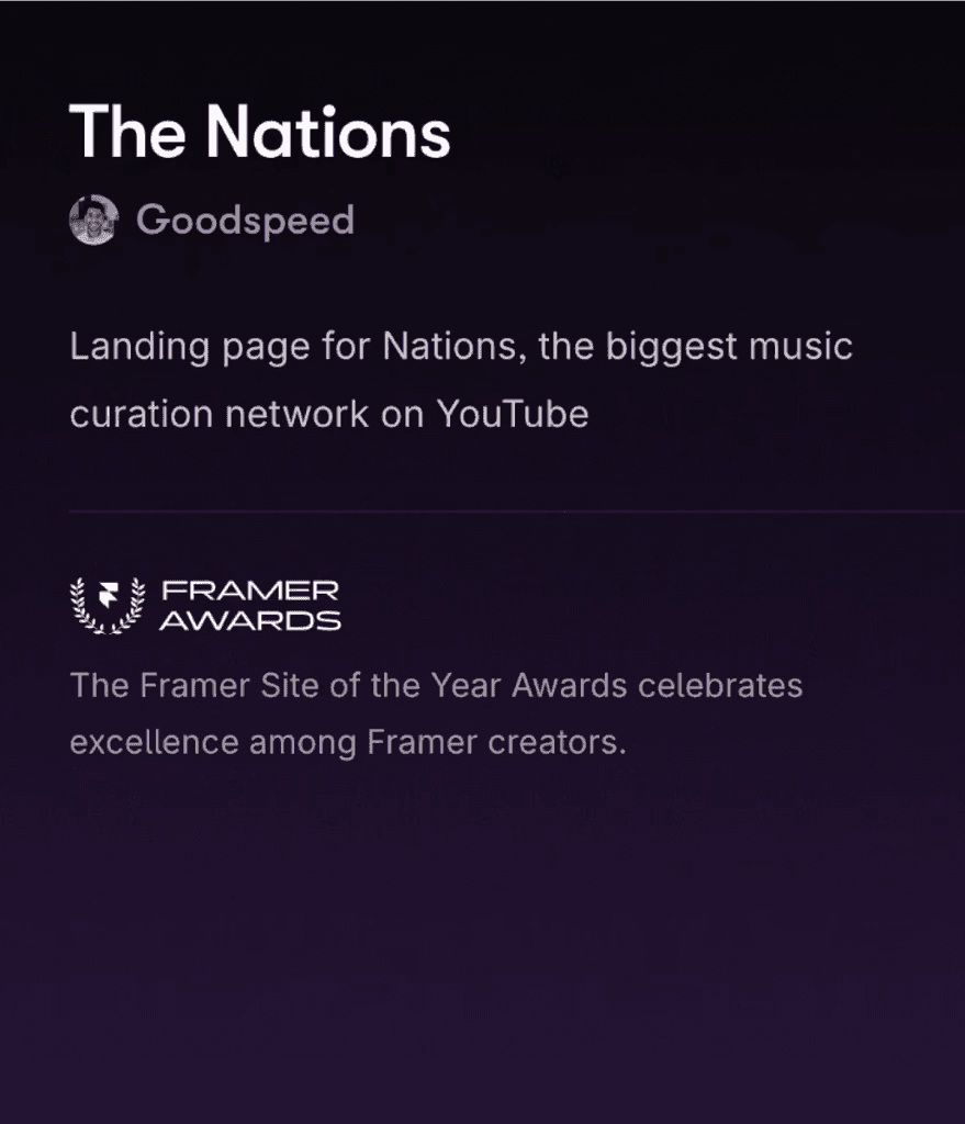 The Nations’ new site immediately doubled artist submissions and climbed to the top spot on Google search - a massive leap in discoverability. With a brand identity that matches their vibe and a nomination for Framer’s Site of the Year, they now have a platform as iconic as their YouTube channels.